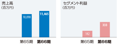 国内では、自動車向けの売上高が増加しました。海外では、中国およびアジアにおいて自動車向けやOA機器向けの売上高が増加したほか、英国において医療機器向けの売上高、米国において住設関連機器向けの売上高が増加しました。これらの結果、売上高は前期比18.9%増の154億8百万円、セグメント利益は同99.8%増の5億97百万円となりました。