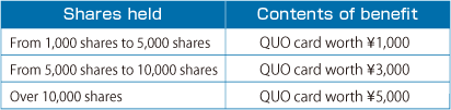 All shareholders registered in the shareholder list of September 30 of each year who have owned at least 1 unit (1,000 shares) of the Group for one year or more shall be eligible for the Benefit Program. (Please refer to homepage of the Group for details.)