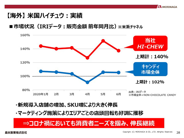 また、新型コロナウイルス感染拡大によるロックダウンや一部小売店舗閉鎖などの影響を受けつつも、 店頭回転も前年比108%と好調を維持しており、取扱い拡大効果と合わせて市場全体を大きく上回る実績となっております。